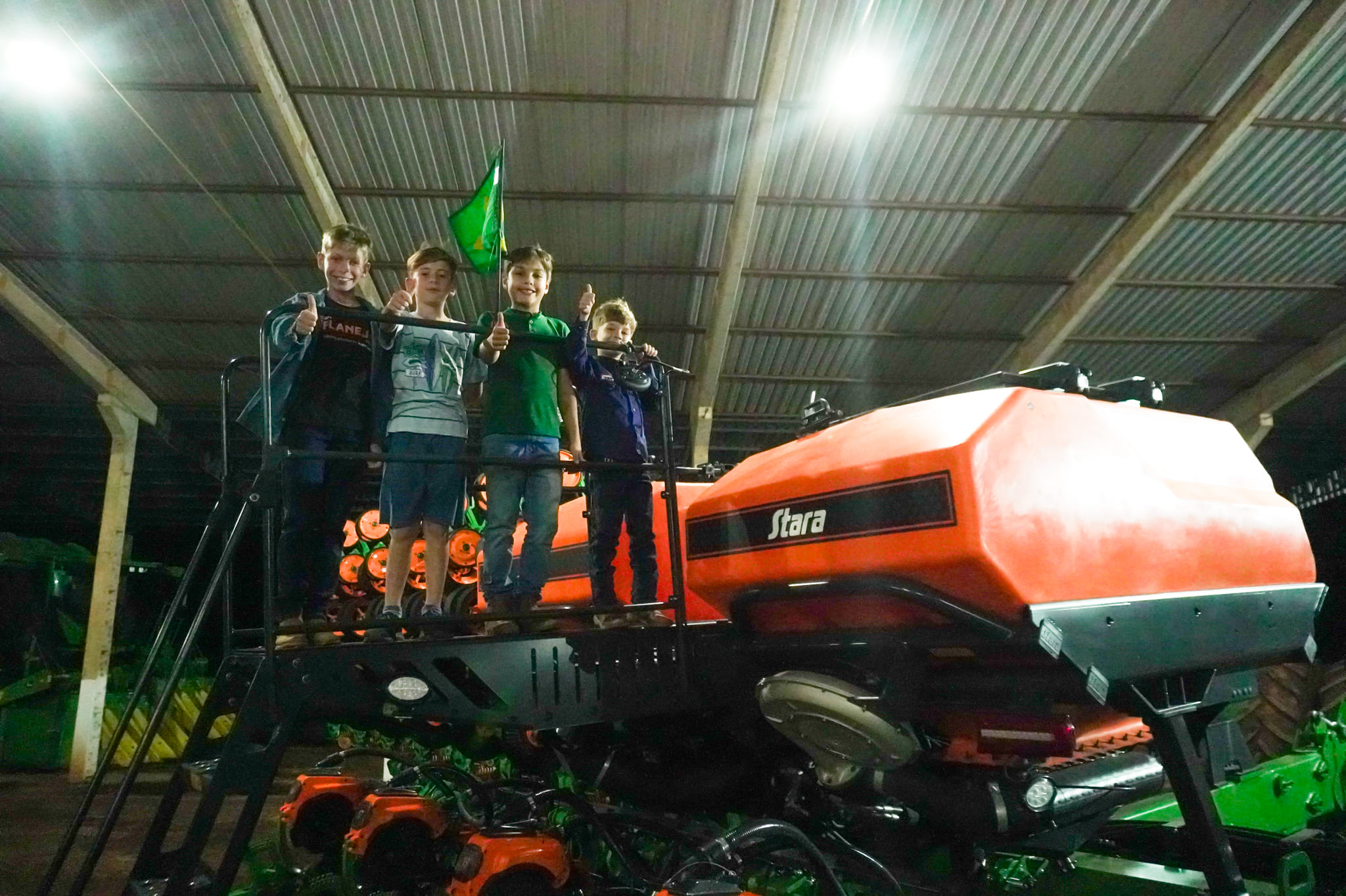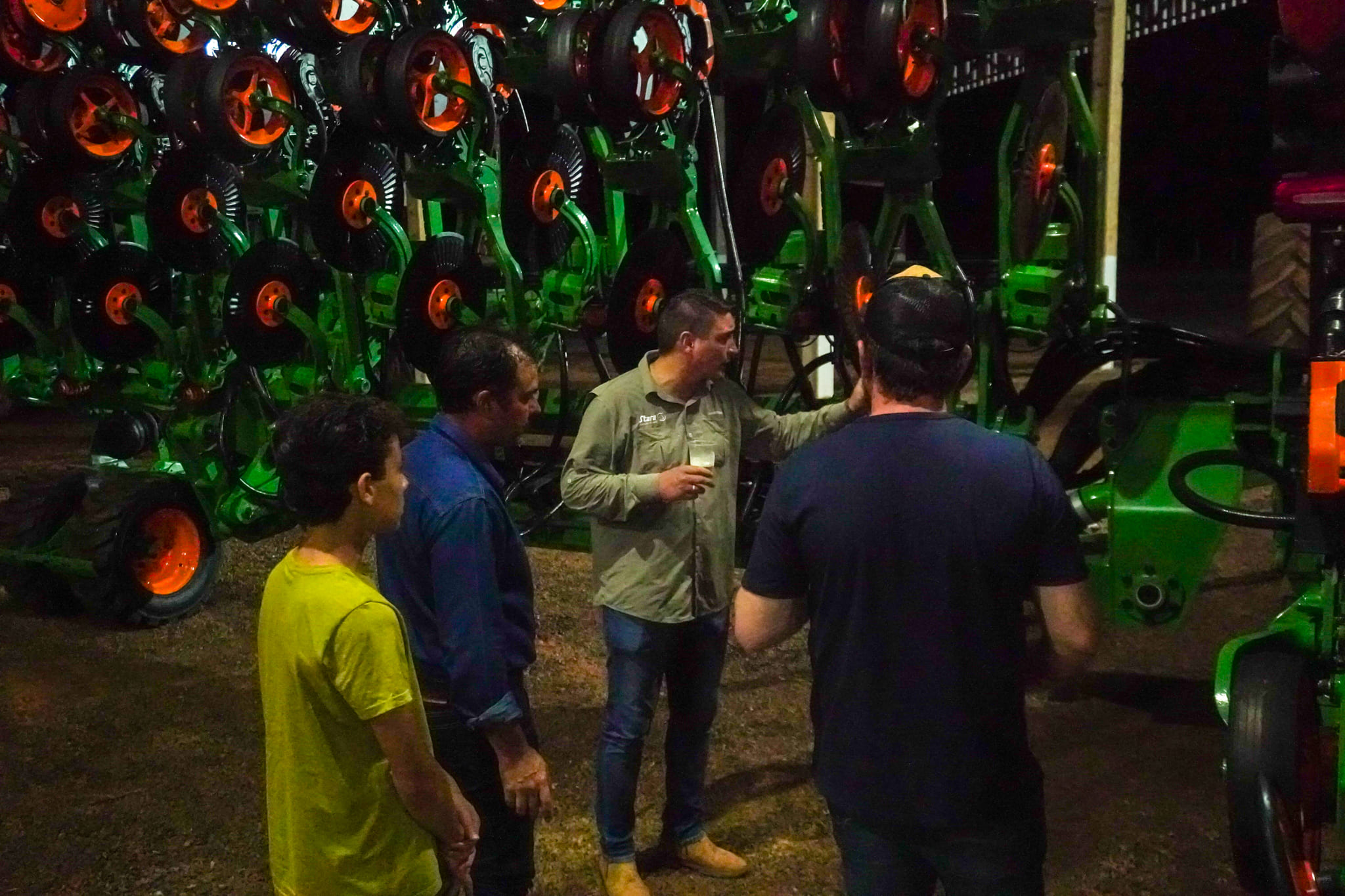 Durante a apresentação, o destaque absoluto foram as Plantadeiras Stara. Os produtores puderam conferir de perto como a engenharia de ponta se traduz em benefícios reais para o dia a dia da fazenda:
