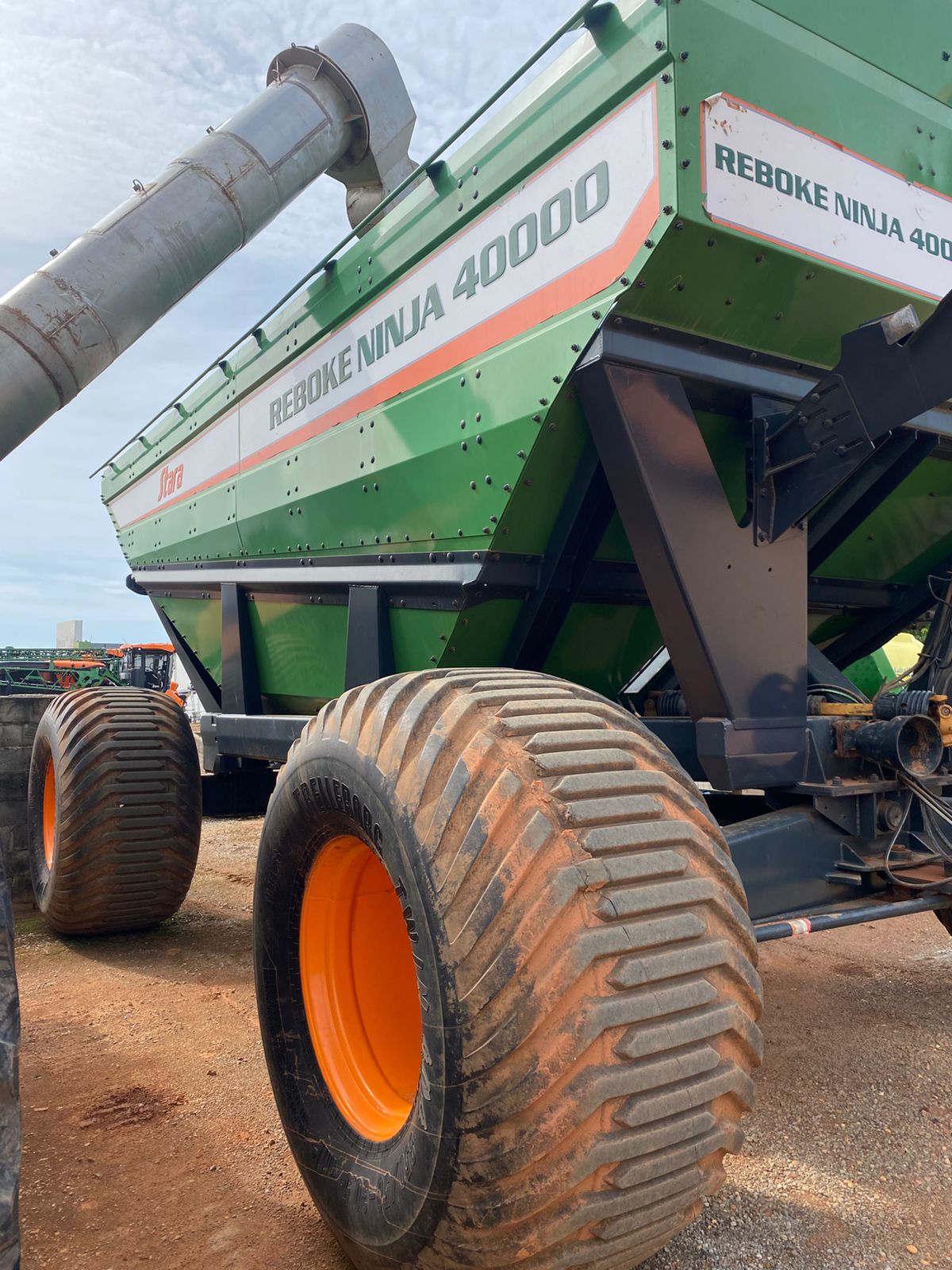 CARRETA GRANELEIRA MOD. REBOKE NINJA 40000, C/ SISTEMA DESCARGA 500MM, AROS/PNEU 28X30.5 / 850/50-30.5, ANO FAB:2018 Valor: R$ 250.000,00